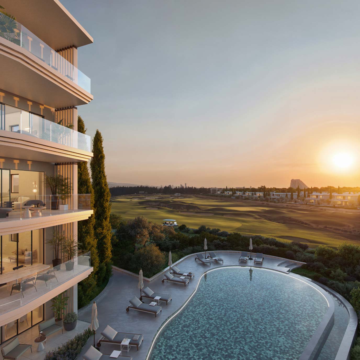 City-connected golf resort apartments offering a differentiated product in the Cyprus property market — ideal for investors seeking defensible long-term value.